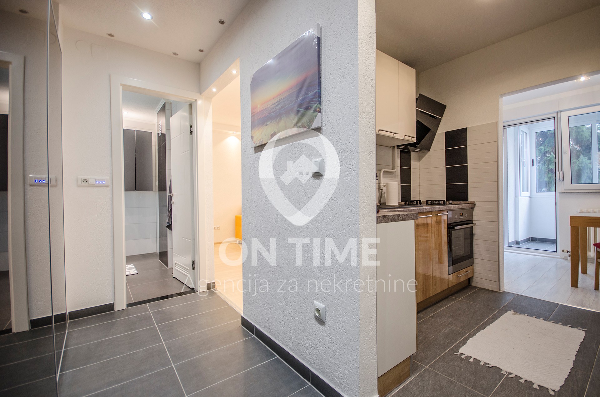 Stan se sastoji od dnevnog boravka, kuhinje i trpezarije, kupatila, predsoblja, i zatvorenog balkona.