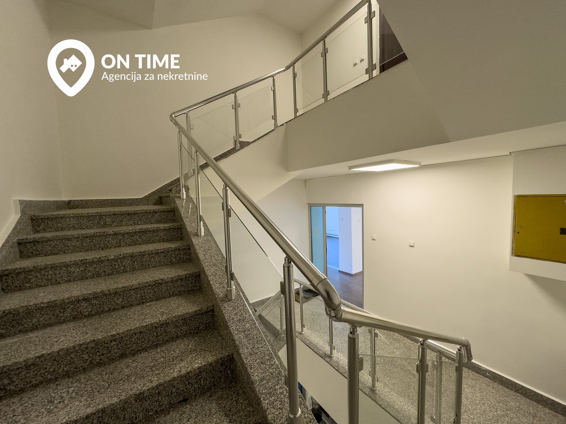 Izdaje se fantastičan nenamješten poslovni prostor na dvije etaže identičnog rasporeda i opremljenosti, ukupne površine 220 m2 (110m2 po etaži), a u prizemlju se nalazi ulazni hol sa recepcijom.