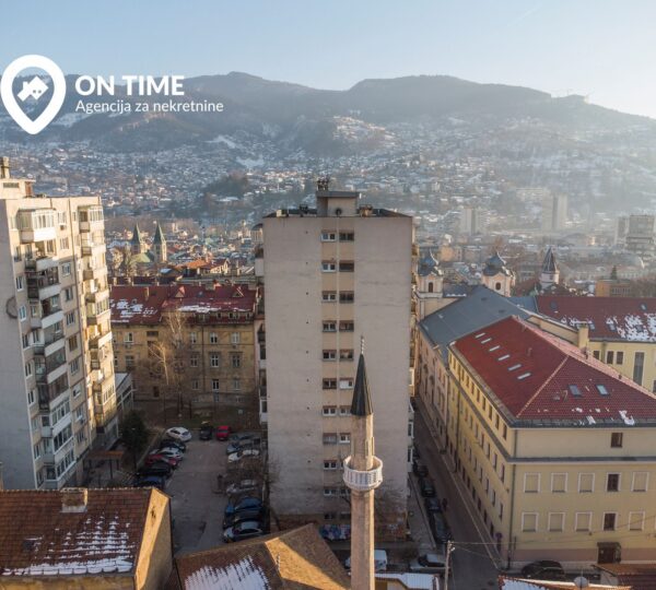 LOKACIJA: Nekretnina se nalazi na petom spratu stambene zgrade sa dva lifta. Pozicionirana je u neboderu koji se nalazi na nekoliko minuta udaljenosti od Katedrale, a samim tim i od užeg centra grada. Ulica Ferhadija, Baščaršija, trg kod Ekonomskog fakulteta, samo su neke od lokacija koje su dostupne u krugu od nekoliko minuta hoda. Brojni supermarketi, kafići, restorani, pekare, apoteke, kompletna gradska infrastruktura u velikoj mjeri olakšava život svakodnevnice i čini ga lakšim.