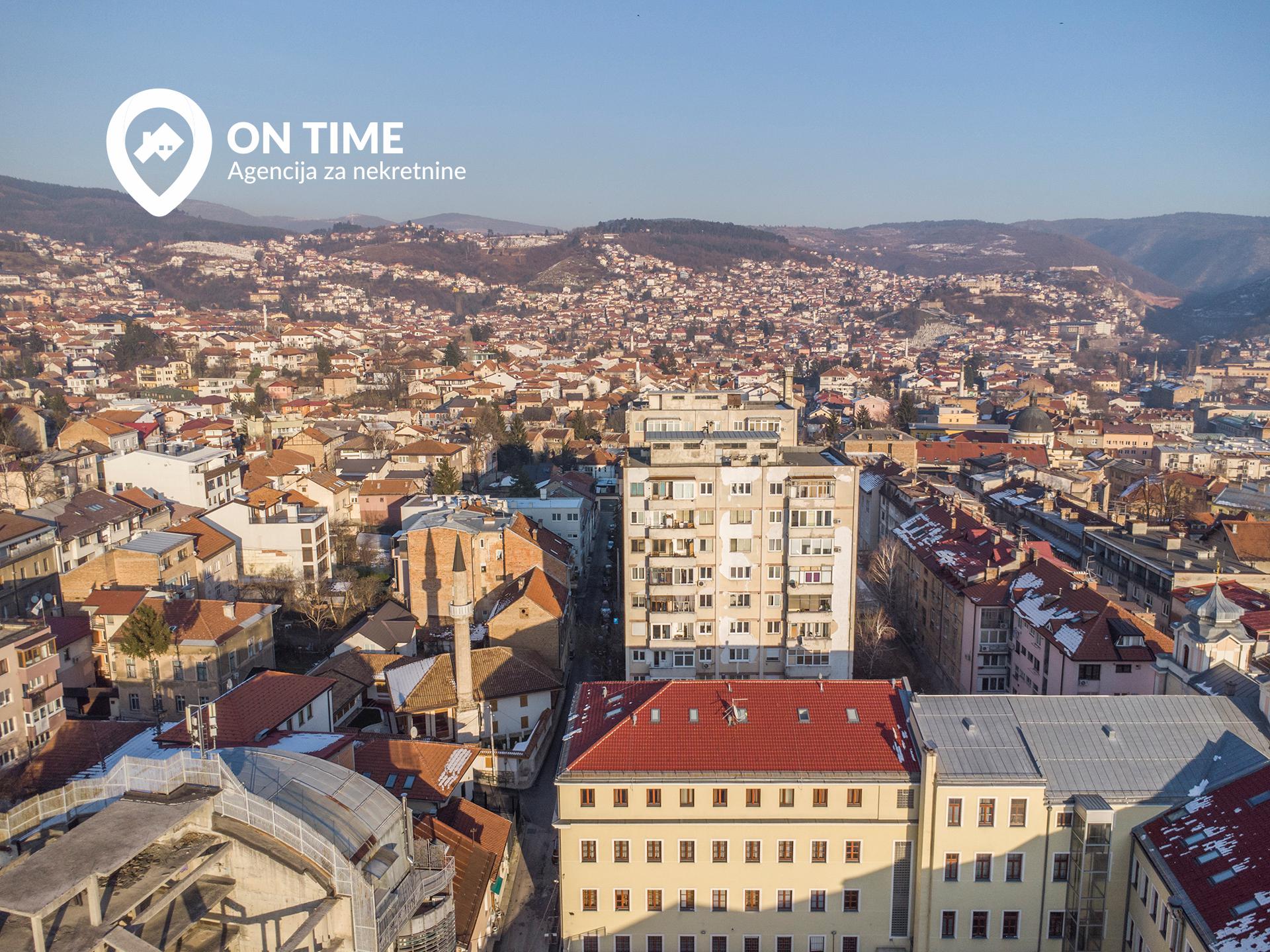 LOKACIJA: Nekretnina se nalazi na petom spratu stambene zgrade sa dva lifta. Pozicionirana je u neboderu koji se nalazi na nekoliko minuta udaljenosti od Katedrale, a samim tim i od užeg centra grada. Ulica Ferhadija, Baščaršija, trg kod Ekonomskog fakulteta, samo su neke od lokacija koje su dostupne u krugu od nekoliko minuta hoda. Brojni supermarketi, kafići, restorani, pekare, apoteke, kompletna gradska infrastruktura u velikoj mjeri olakšava život svakodnevnice i čini ga lakšim.
