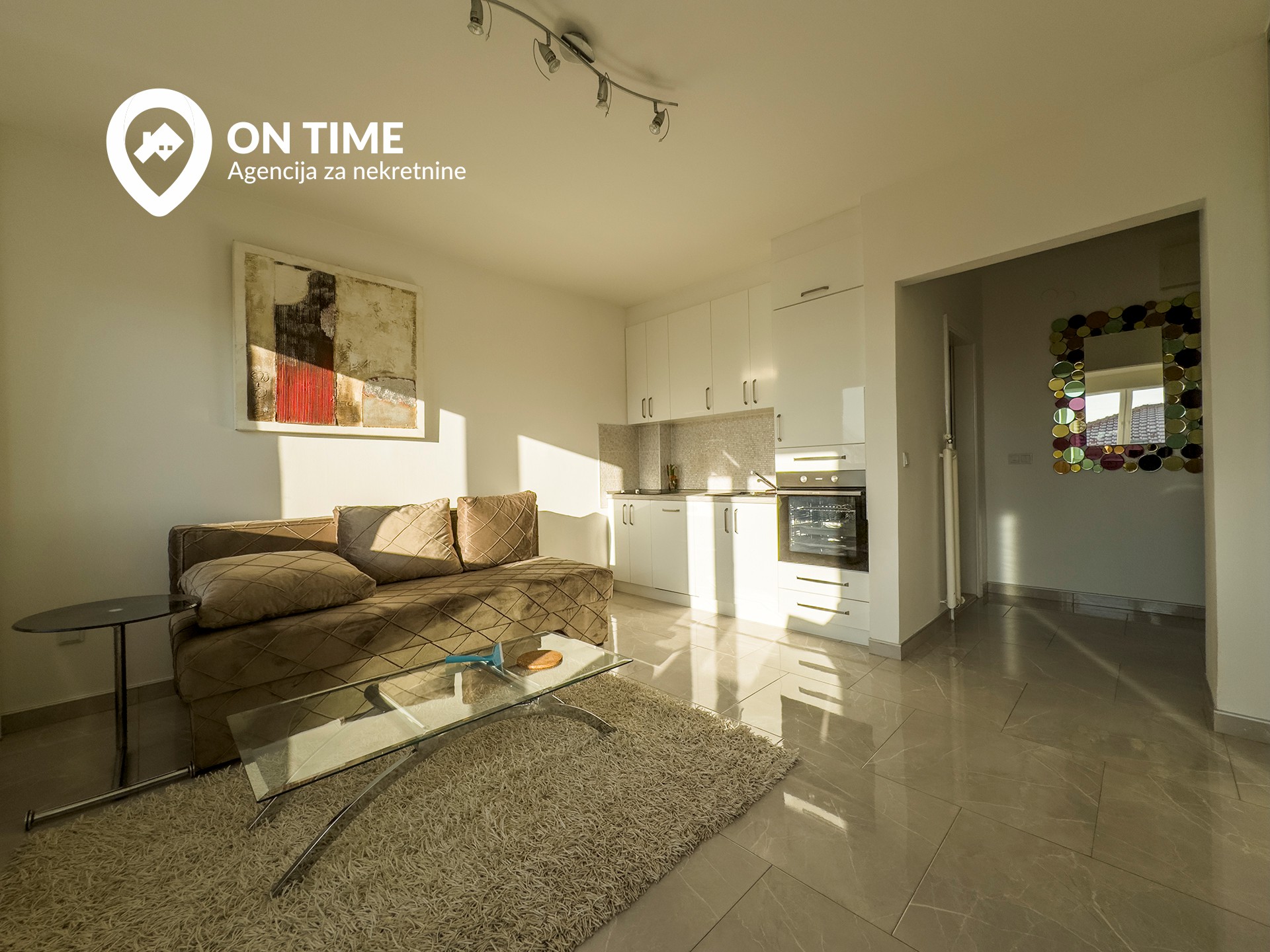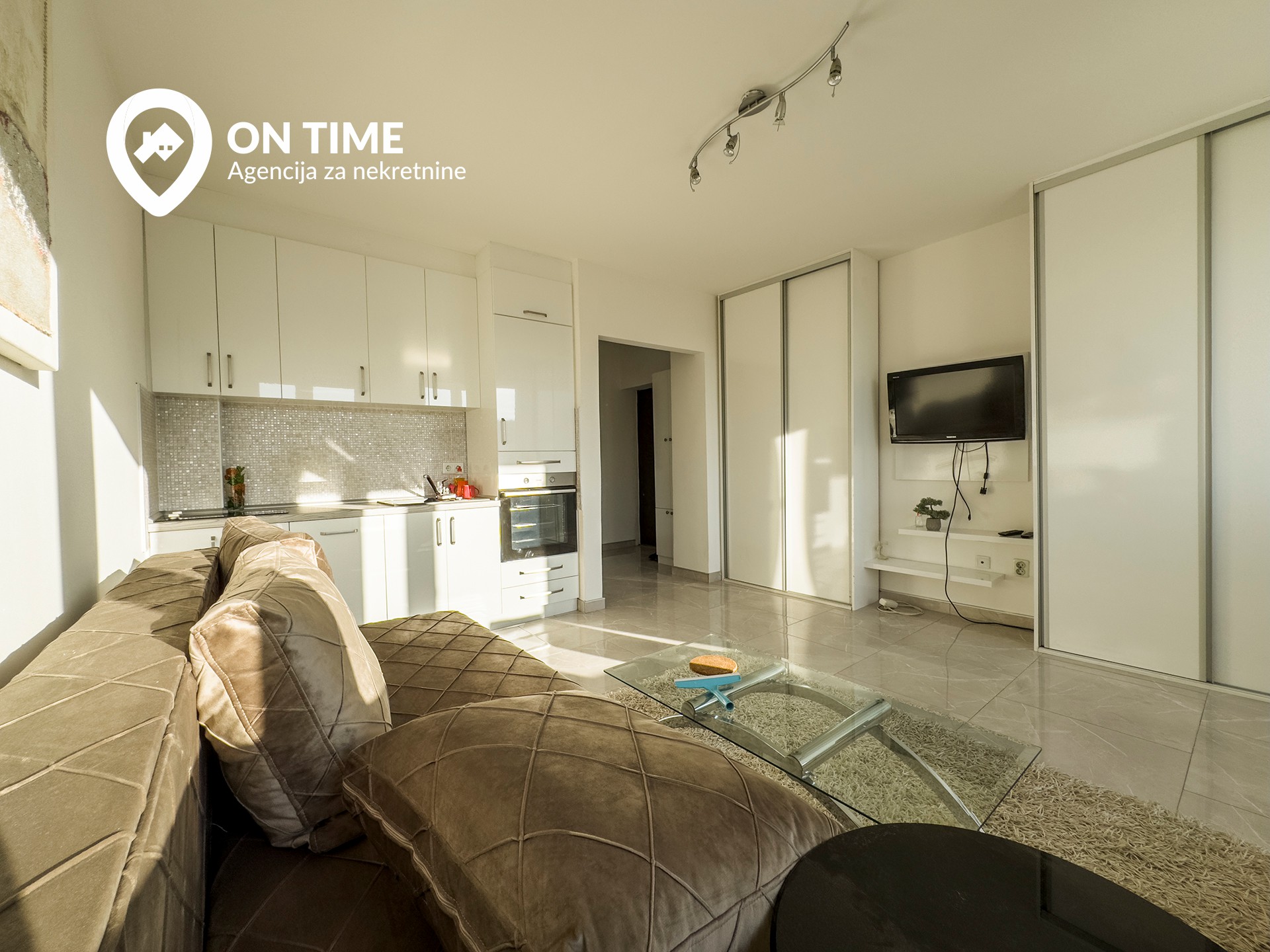 Stan se sastoji od dnevnog boravka sa kuhinjom i trpezarijom, kupatila i predsoblja.