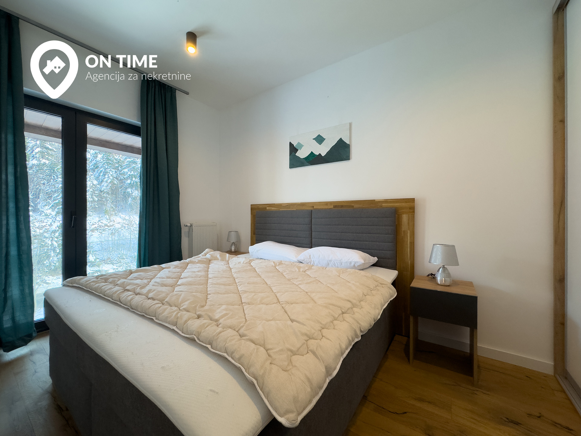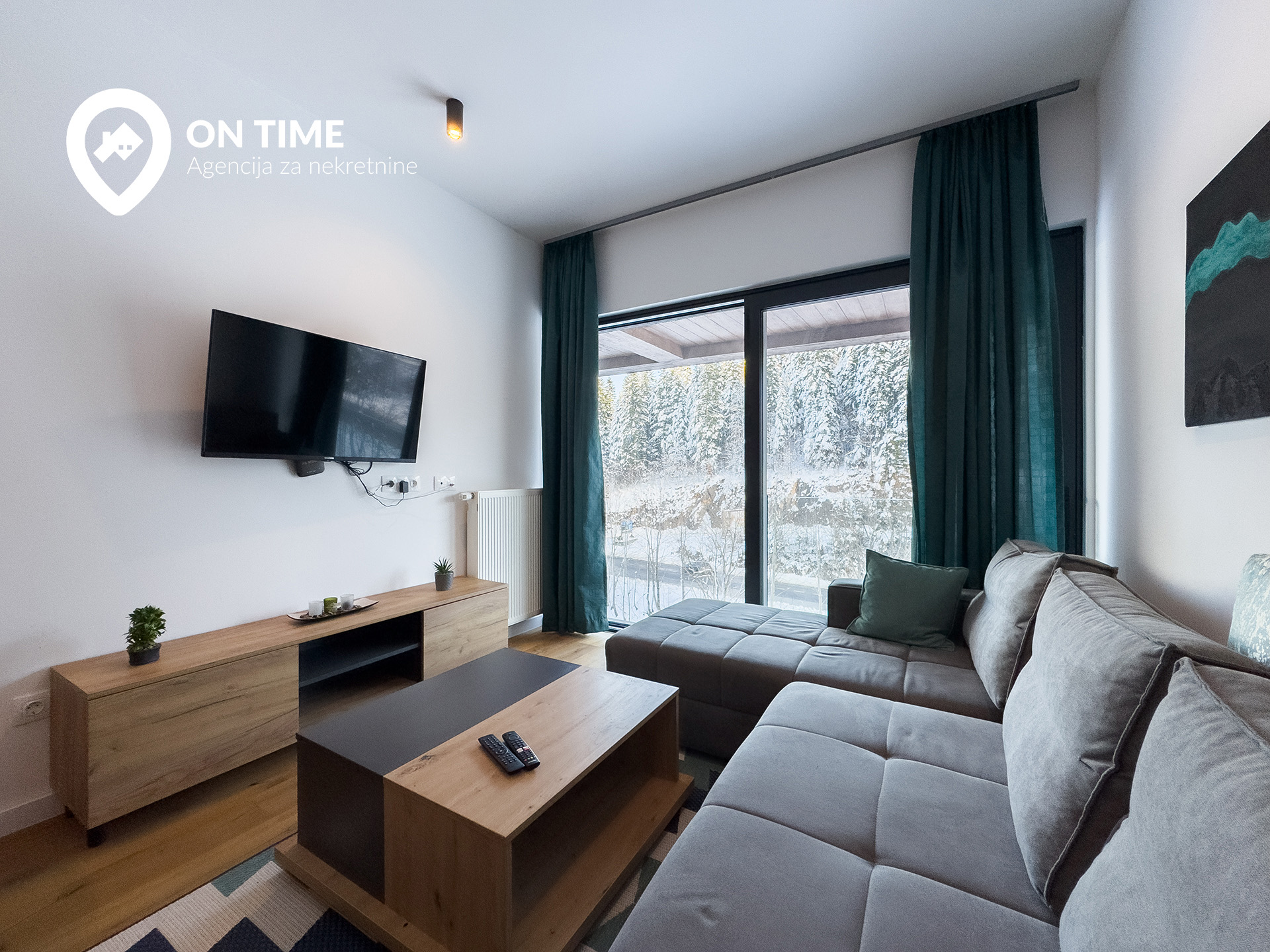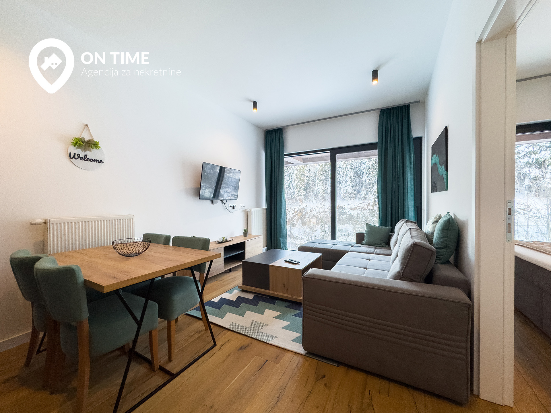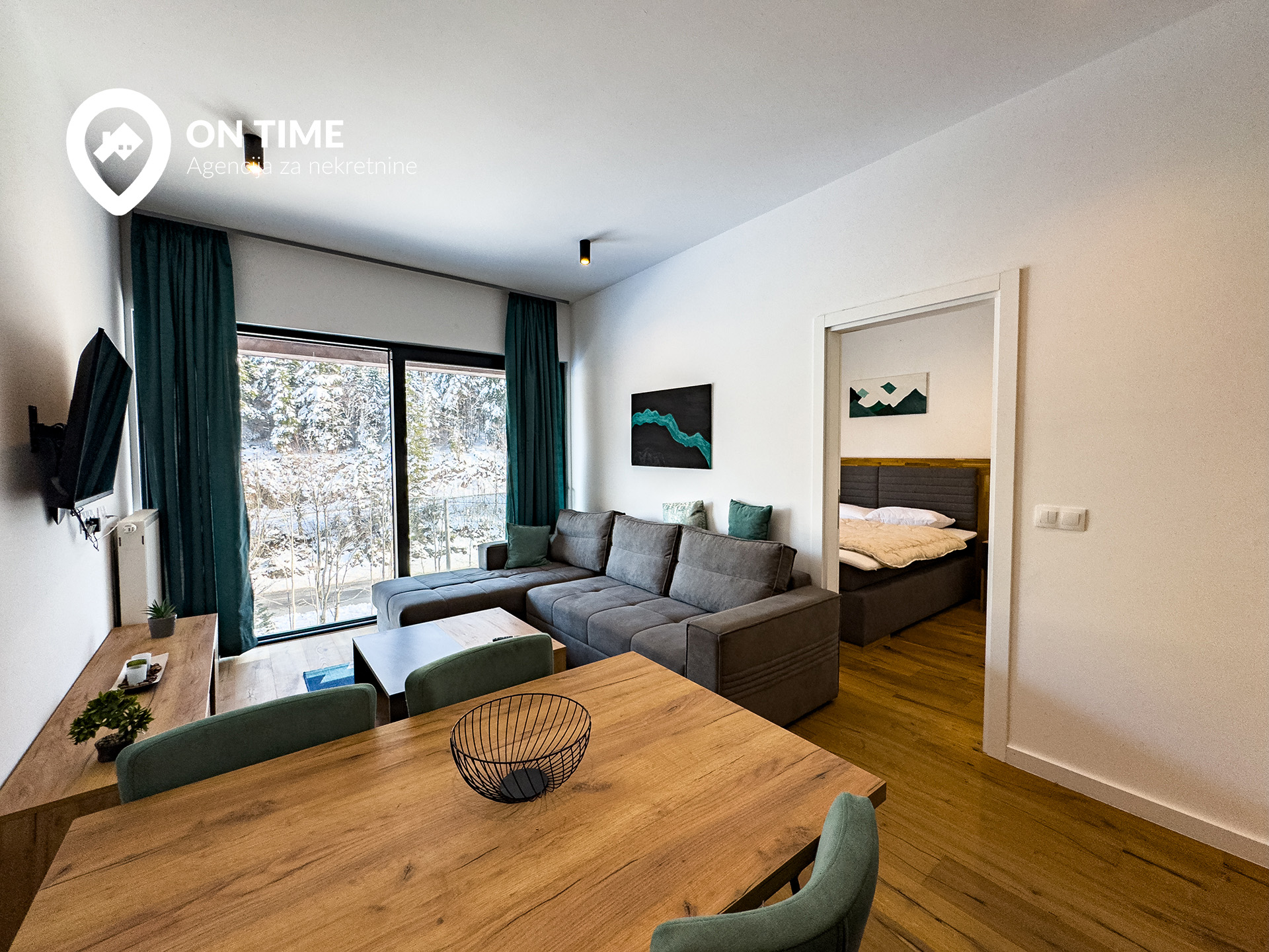 Apartman se nalazi na četvrtom spratu novoizgrađenog aparthotela “Phoenix” sa liftom, a čine ga sljedeće prostorije: Dnevni boravak sa trpezarijom i kuhinjom; Spavaća soba; Prostrani hodnik; Kupatilo i skijašnica koja dođe pri kupovini apartmana.