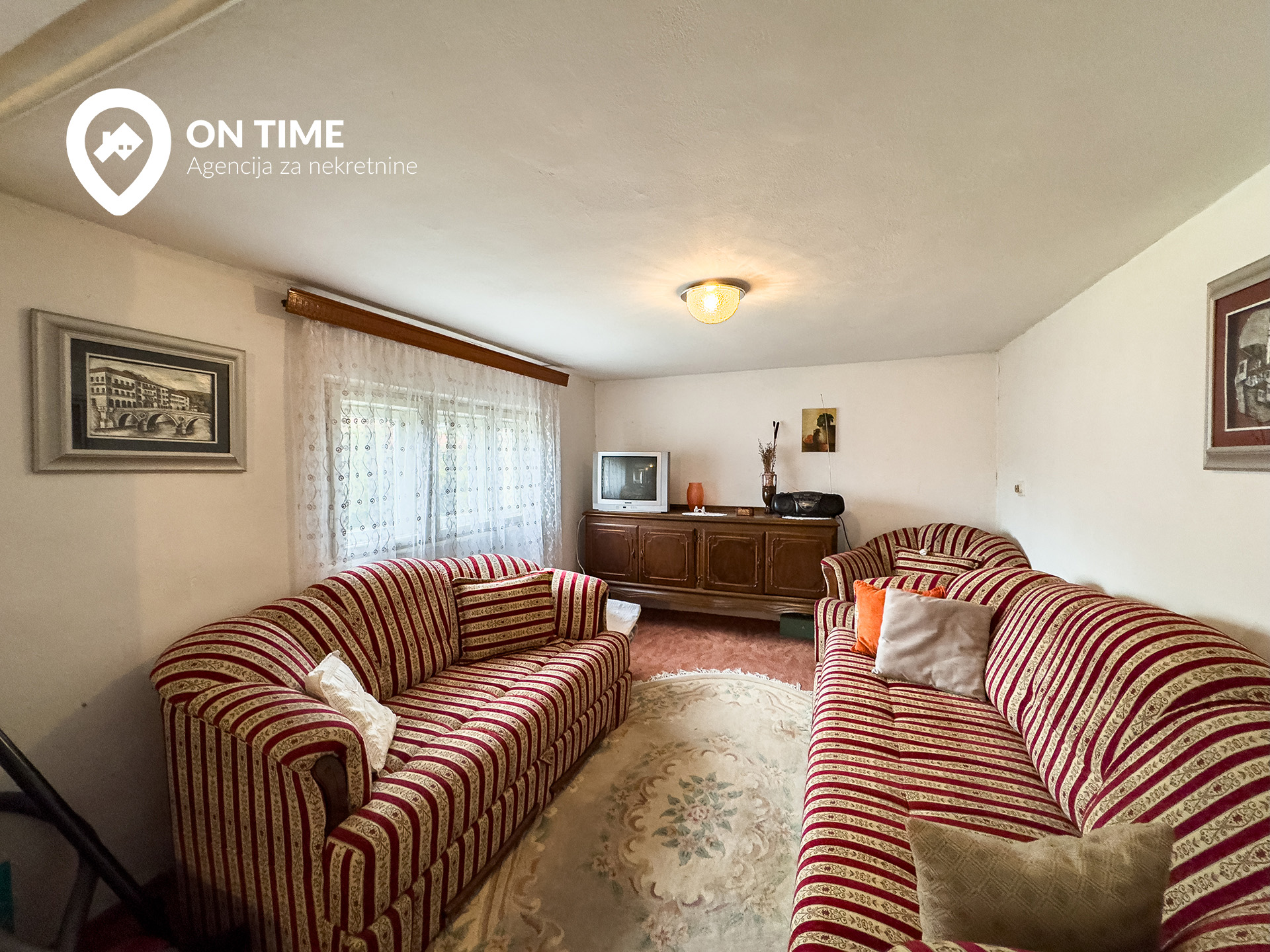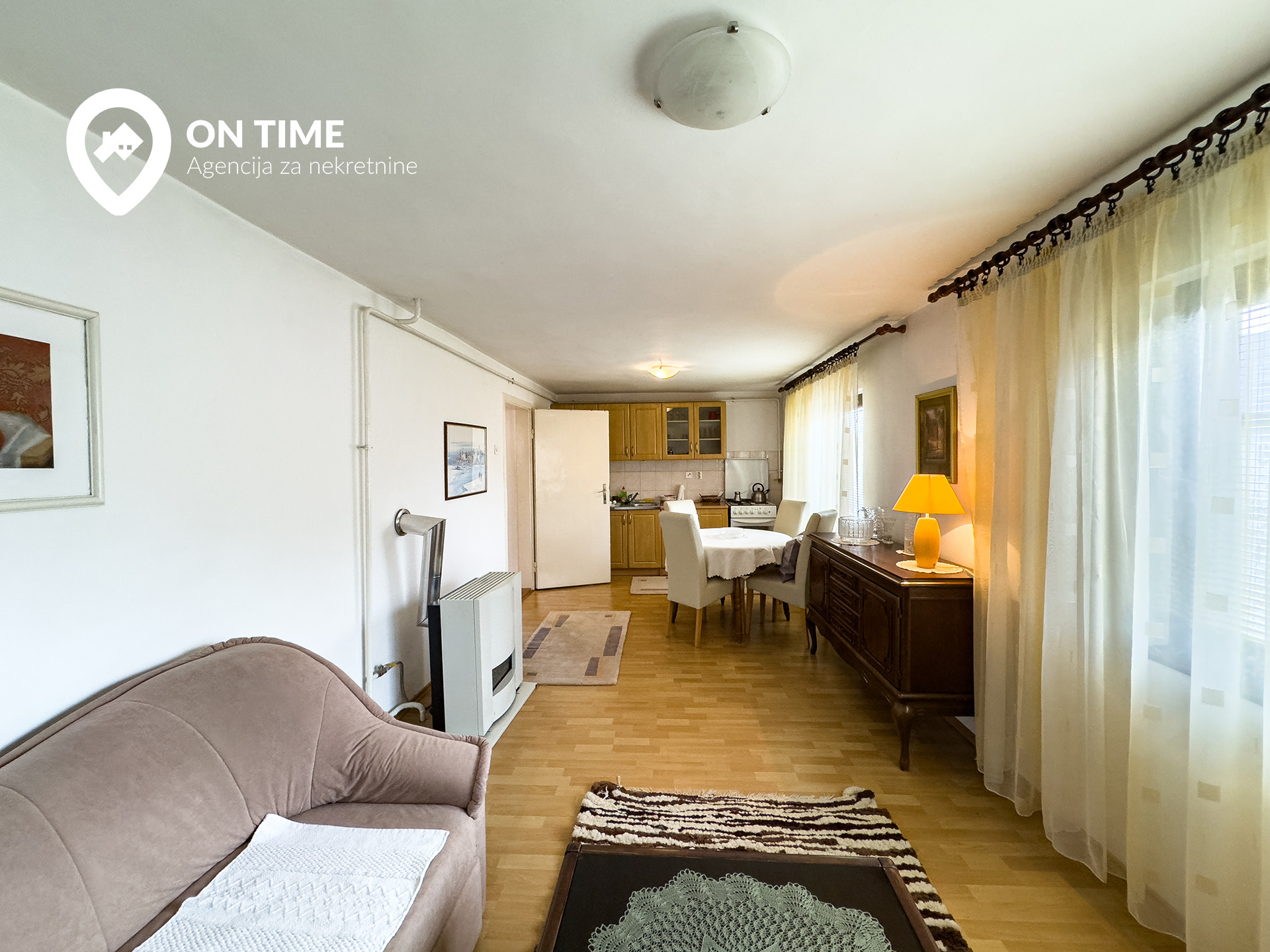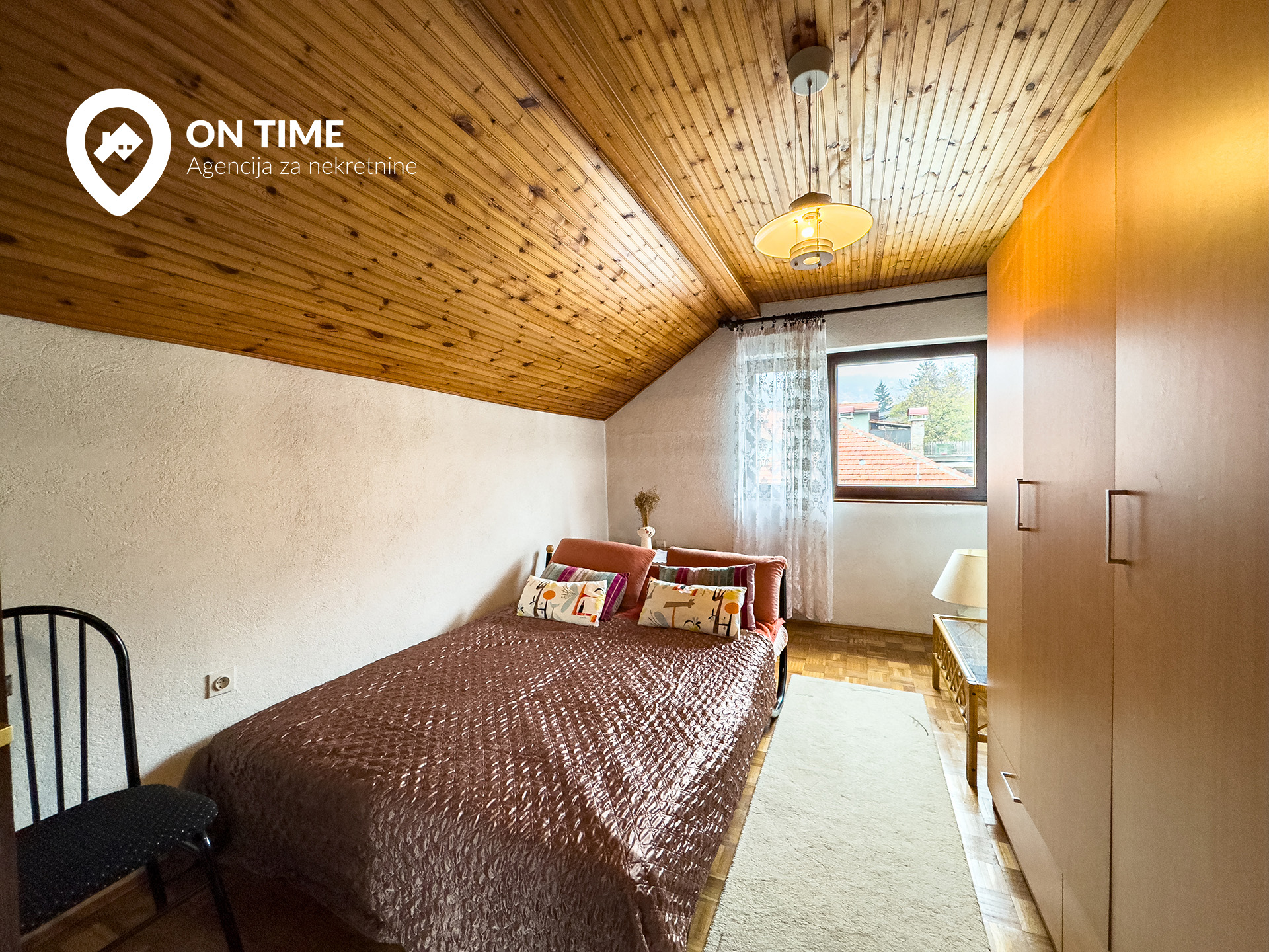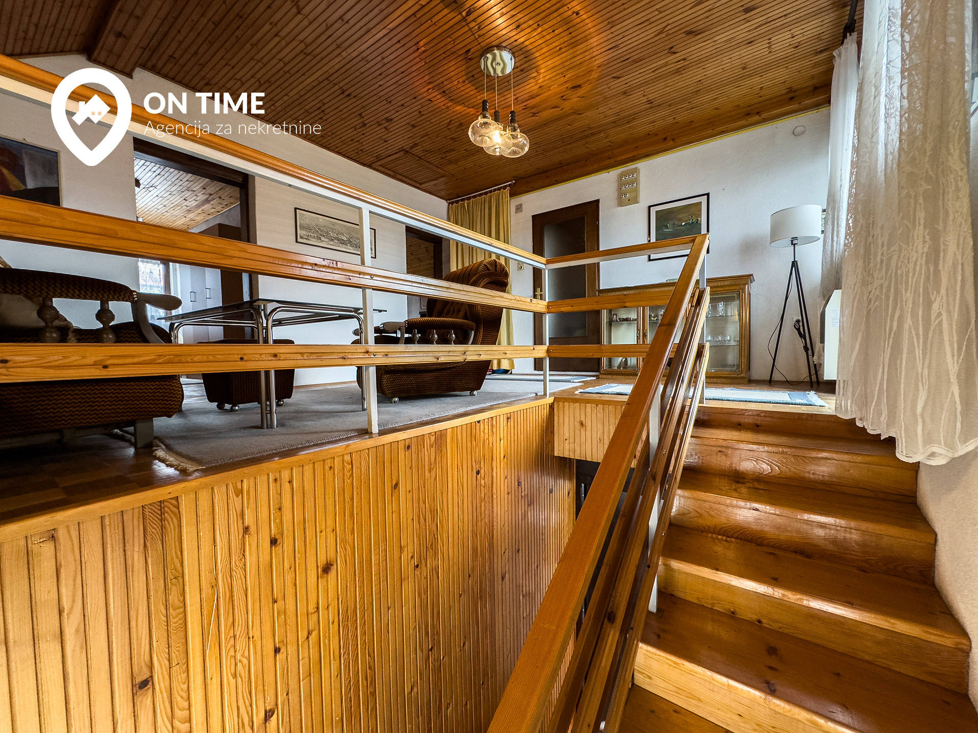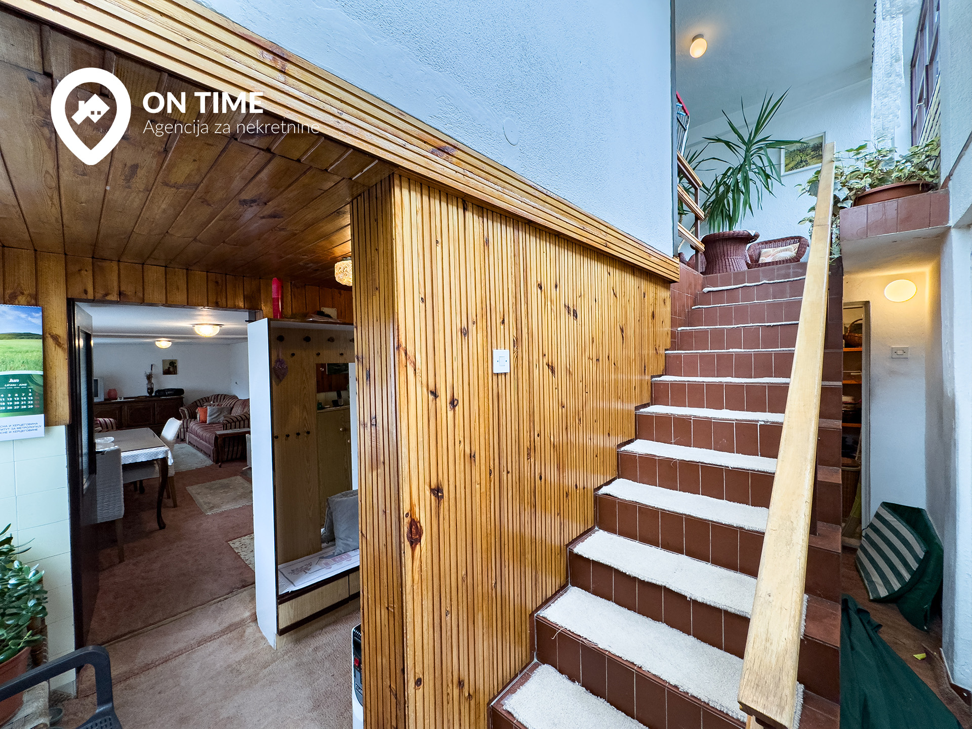 Kuća se prostire na tri etaže ukupne uknjižene površine od 57 m², uz dvorište površine 213 m². Takođe, posjeduje garažu i ima odličan prilazni put.