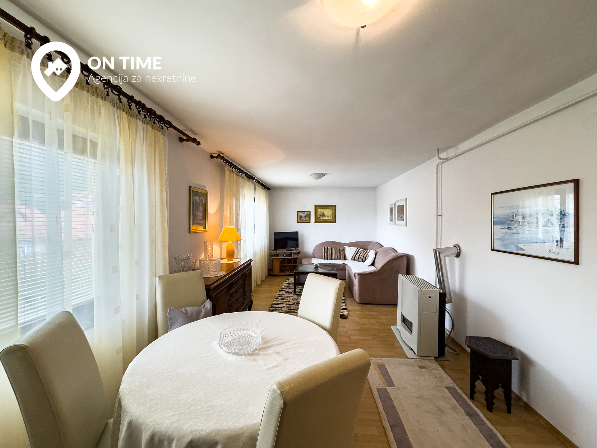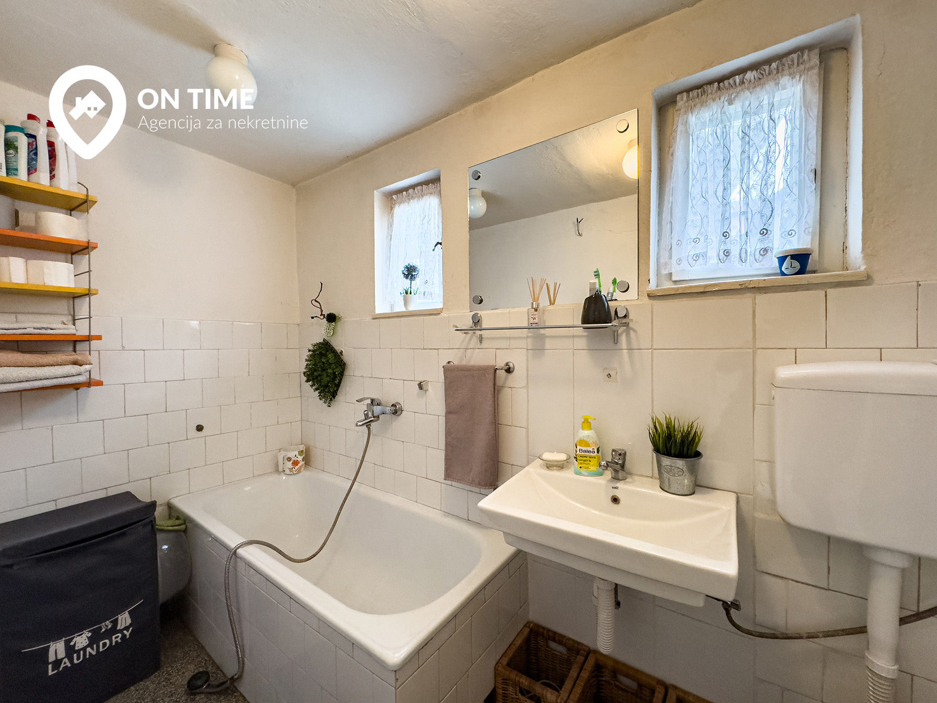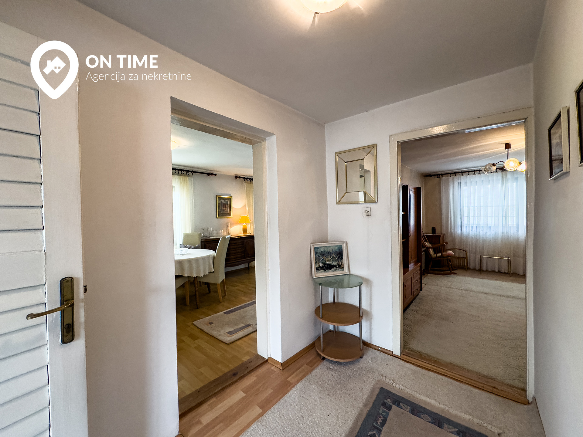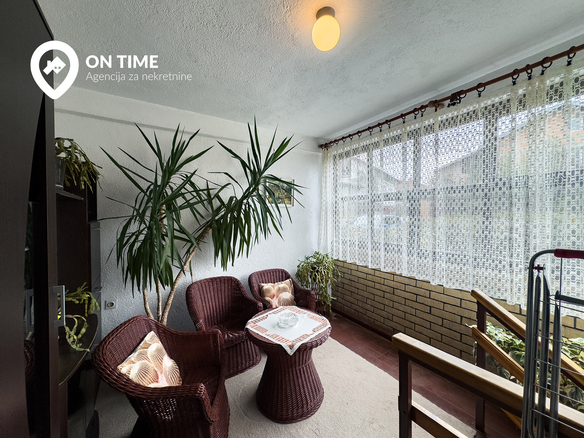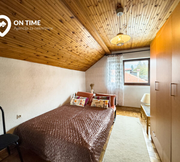 Kuća se prostire na tri etaže ukupne uknjižene površine od 57 m², uz dvorište površine 213 m². Takođe, posjeduje garažu i ima odličan prilazni put.