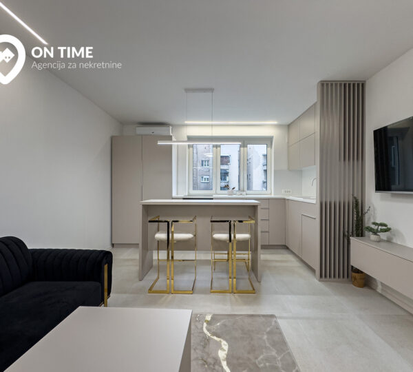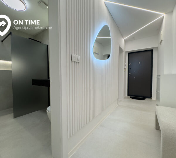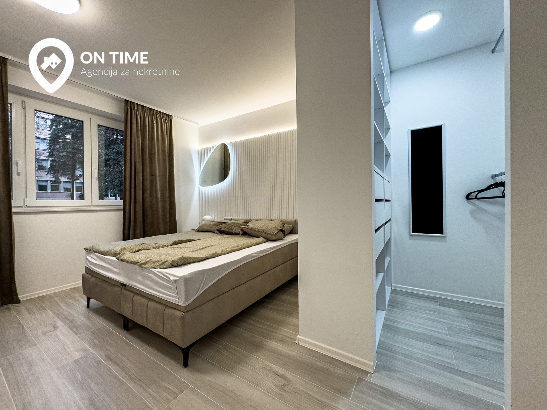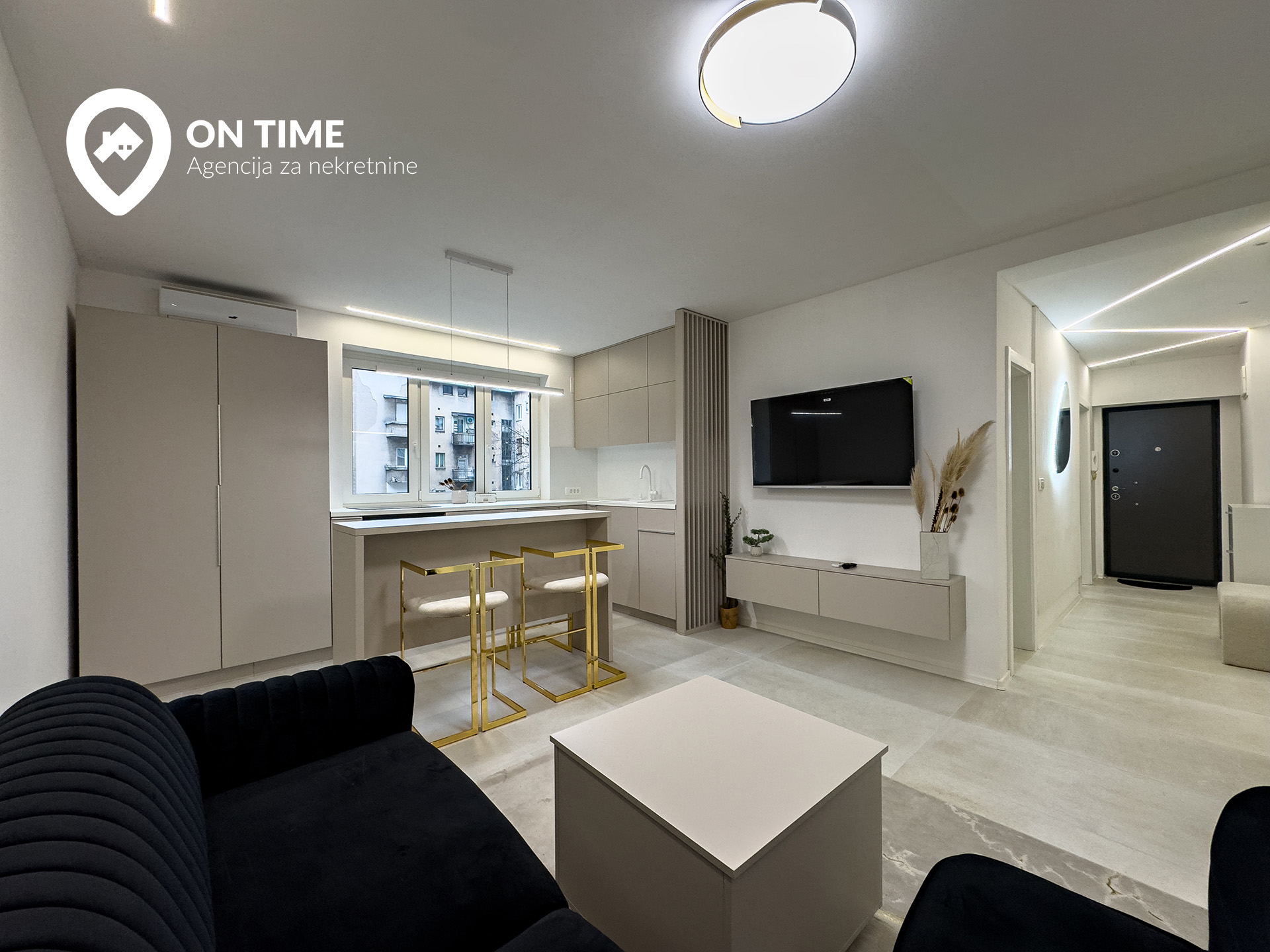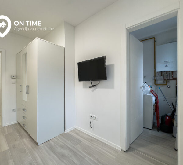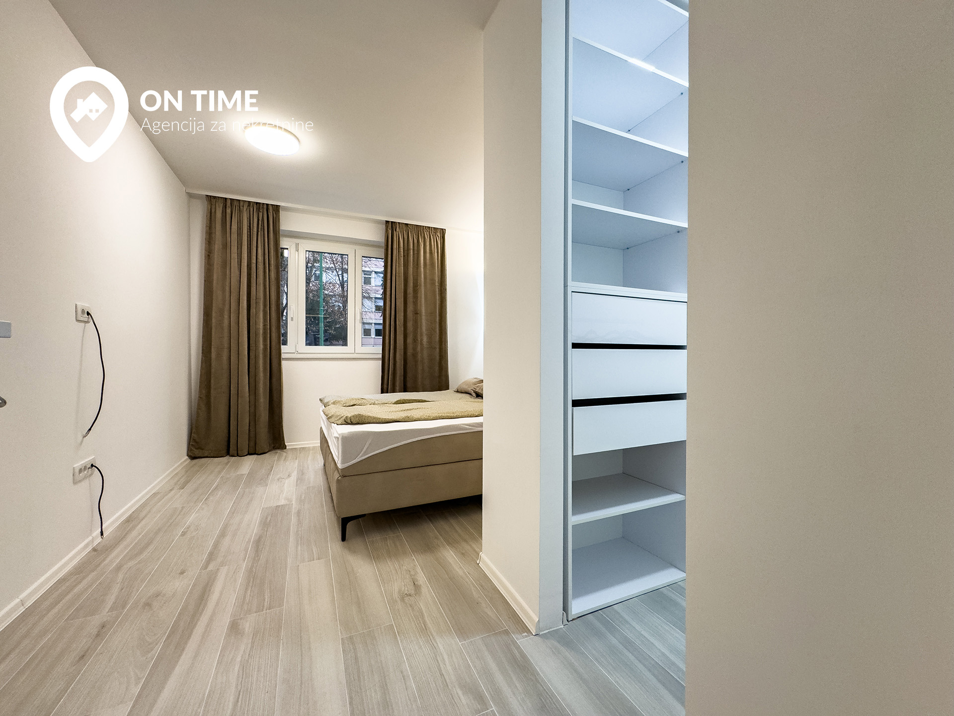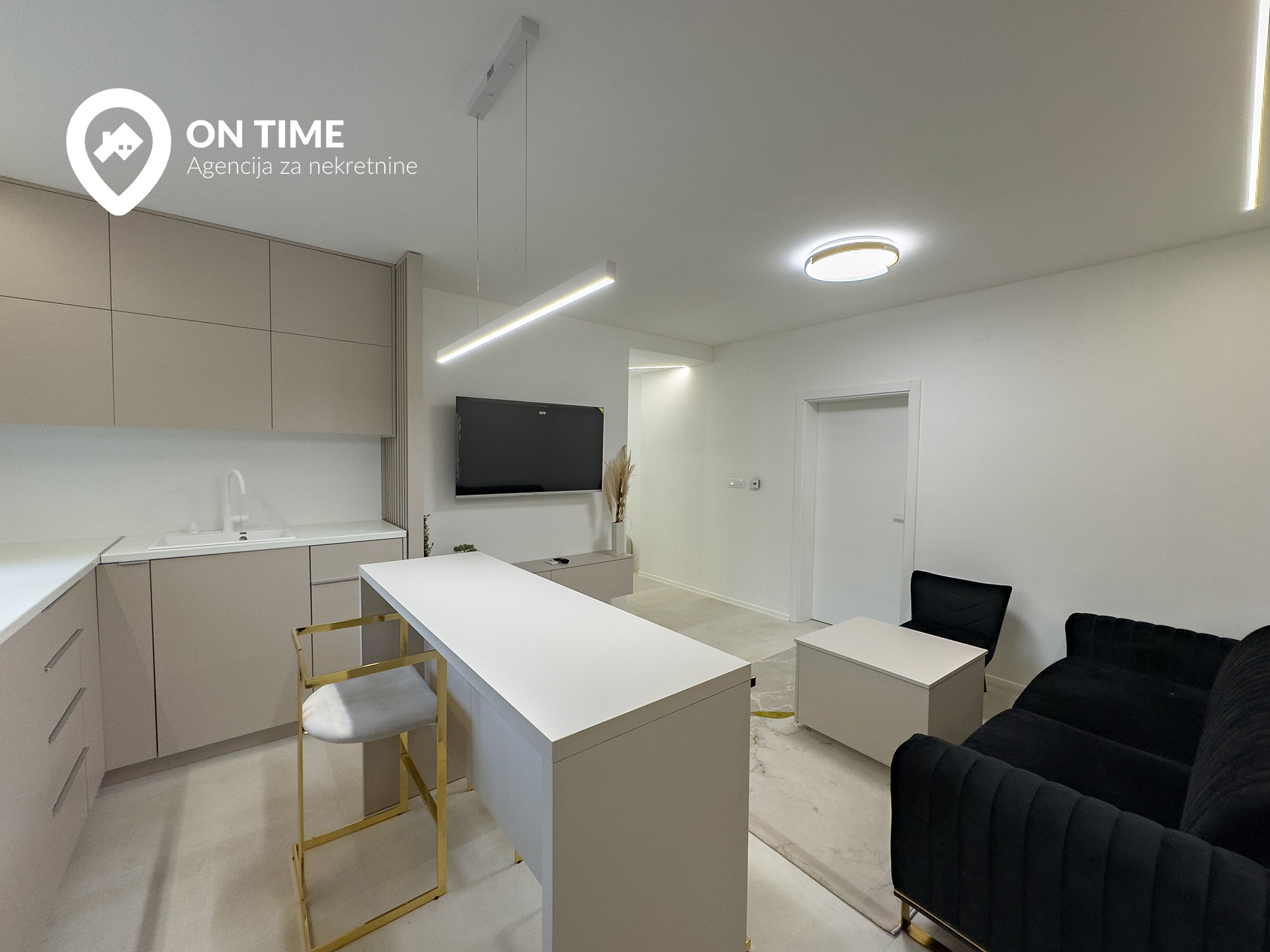 Stan je temeljito renoviran prije nekoliko mjeseci i opremljen najmodrenijim namještajem i tehnikom, te su promijenjene sve elektro i vodoinstalacije. Stan čine sljedeće prostorije: Ulazni hodnik; Dnevni boravak sa trpezarijom i kuhinjom; Veća spavaća soba sa garderoberom; Manja dječija soba; Ostava i kupatilo. Stan se prodaje potpuno namješten, uključujući ugradbeni i pokretni namještaj i električne uređaje. Parking iza zgrade, dostupan stanarima (skoro uvijek slobodan prema riječima vlasnika). Vrijedi napomenutni da je stan dvostrano orijentisan.