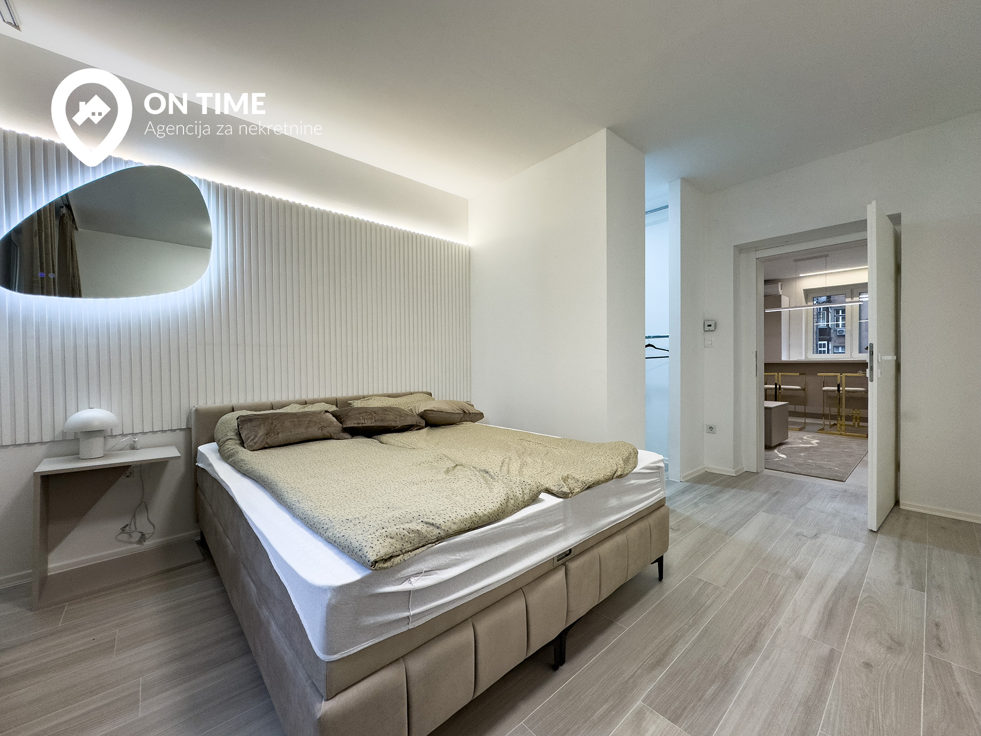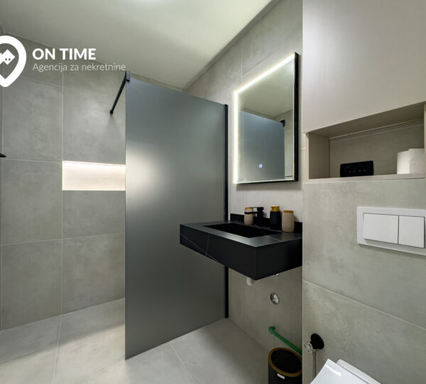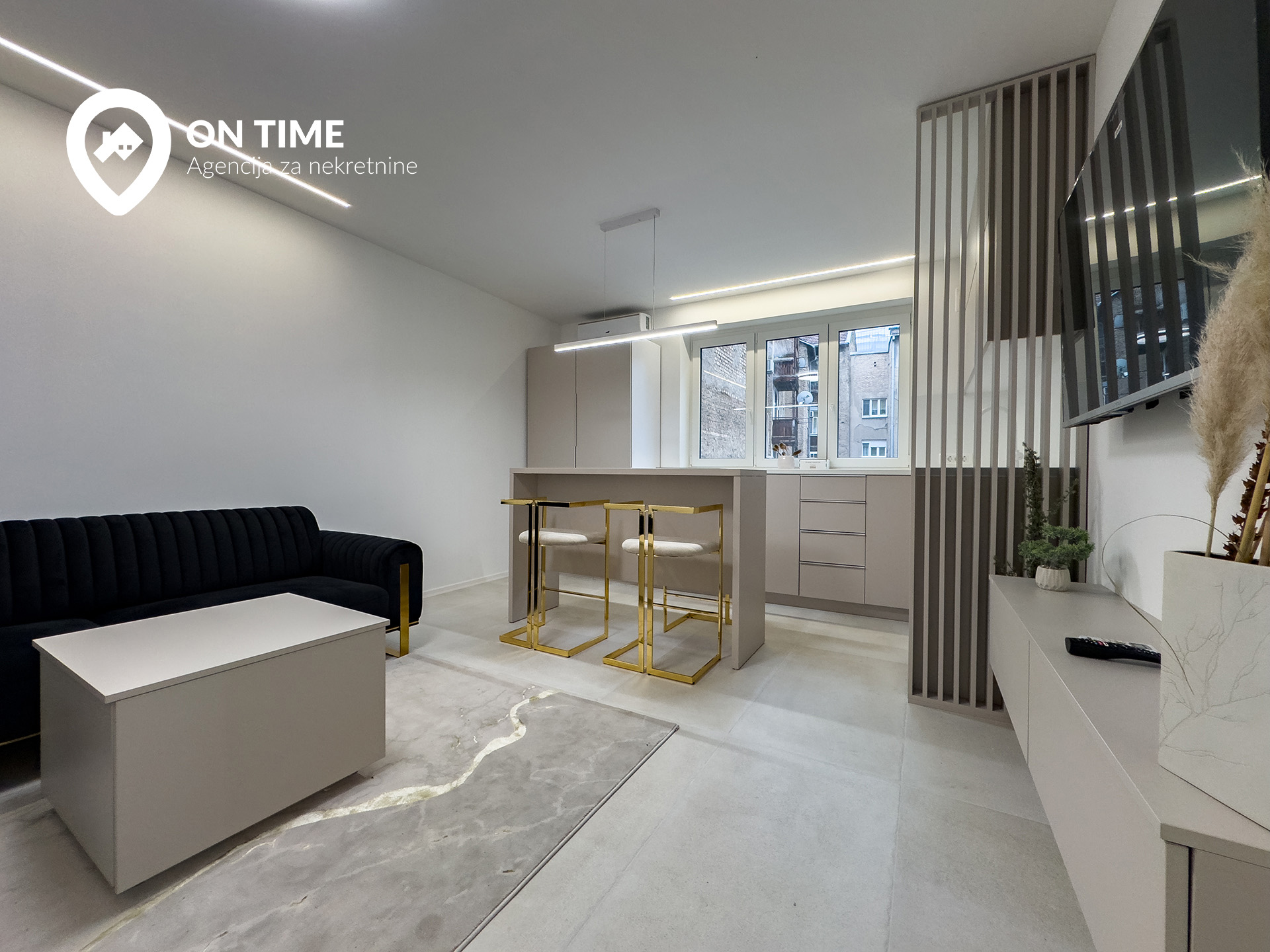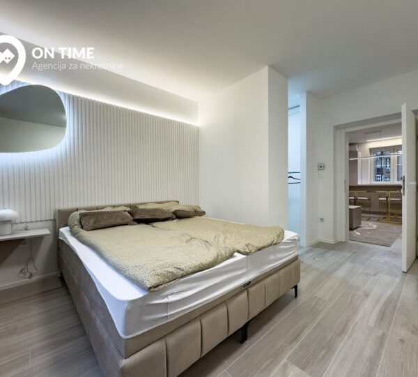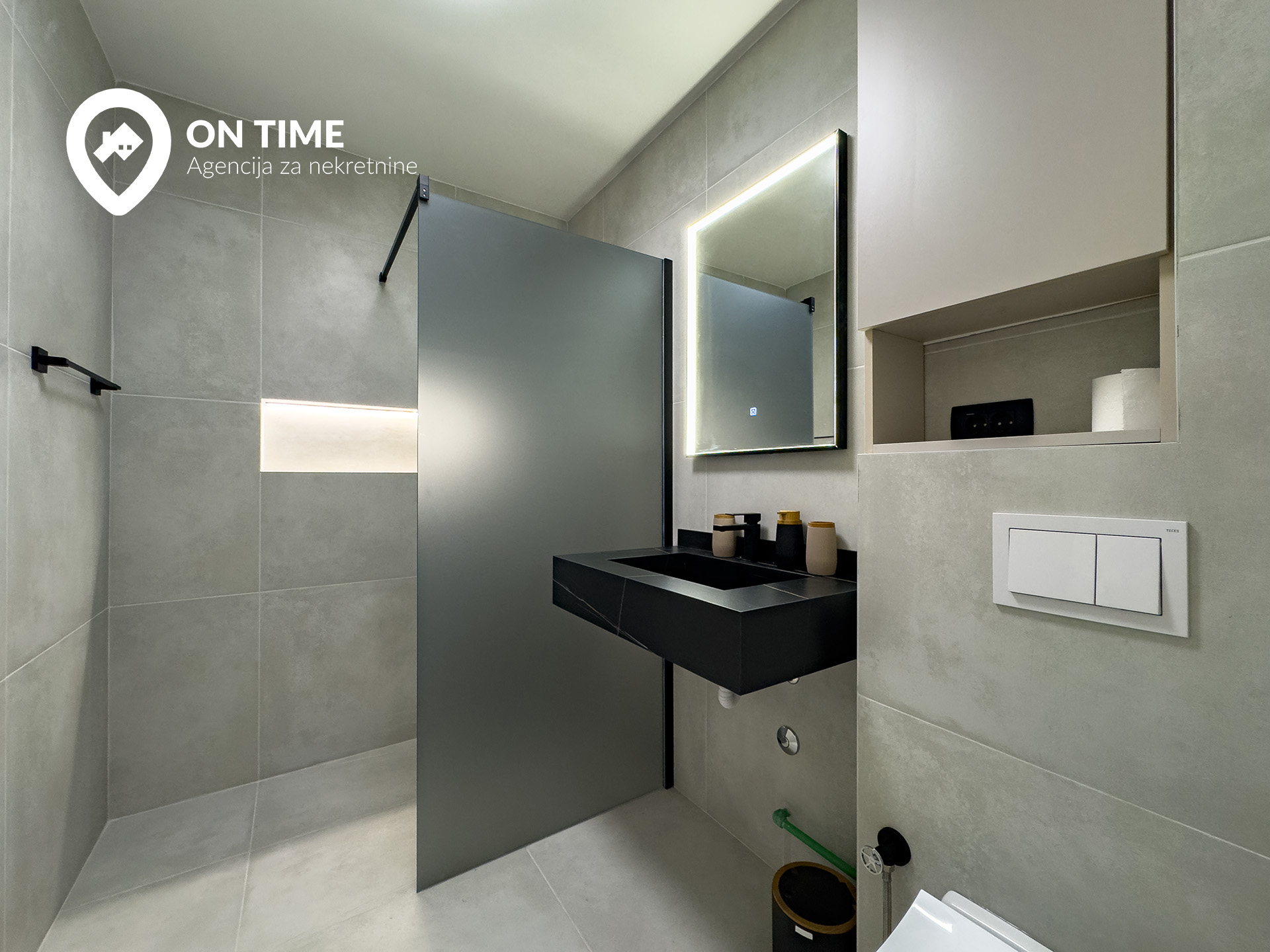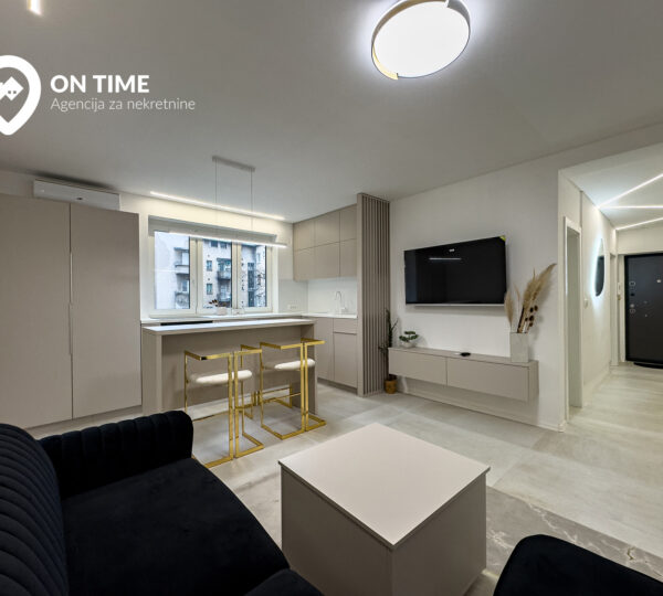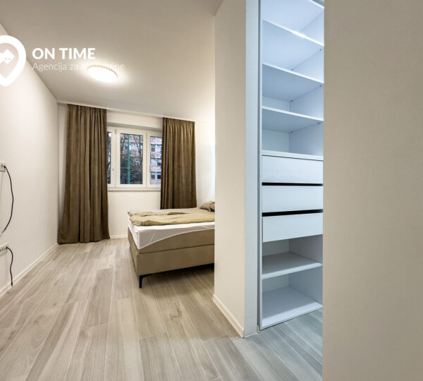 Stan je temeljito renoviran prije nekoliko mjeseci i opremljen najmodrenijim namještajem i tehnikom, te su promijenjene sve elektro i vodoinstalacije. Stan čine sljedeće prostorije: Ulazni hodnik; Dnevni boravak sa trpezarijom i kuhinjom; Veća spavaća soba sa garderoberom; Manja dječija soba; Ostava i kupatilo. Stan se prodaje potpuno namješten, uključujući ugradbeni i pokretni namještaj i električne uređaje. Parking iza zgrade, dostupan stanarima (skoro uvijek slobodan prema riječima vlasnika). Vrijedi napomenutni da je stan dvostrano orijentisan.