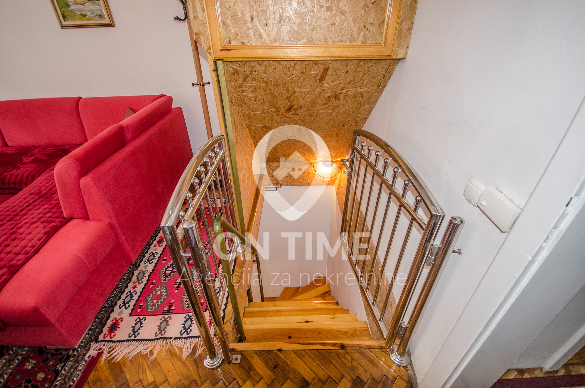 Stan se sastoji od dnevnog boravka, kuhinje i trpezarije, hodnika, kupatila, toaleta, ostave i sobe u suterenskom dijelu.