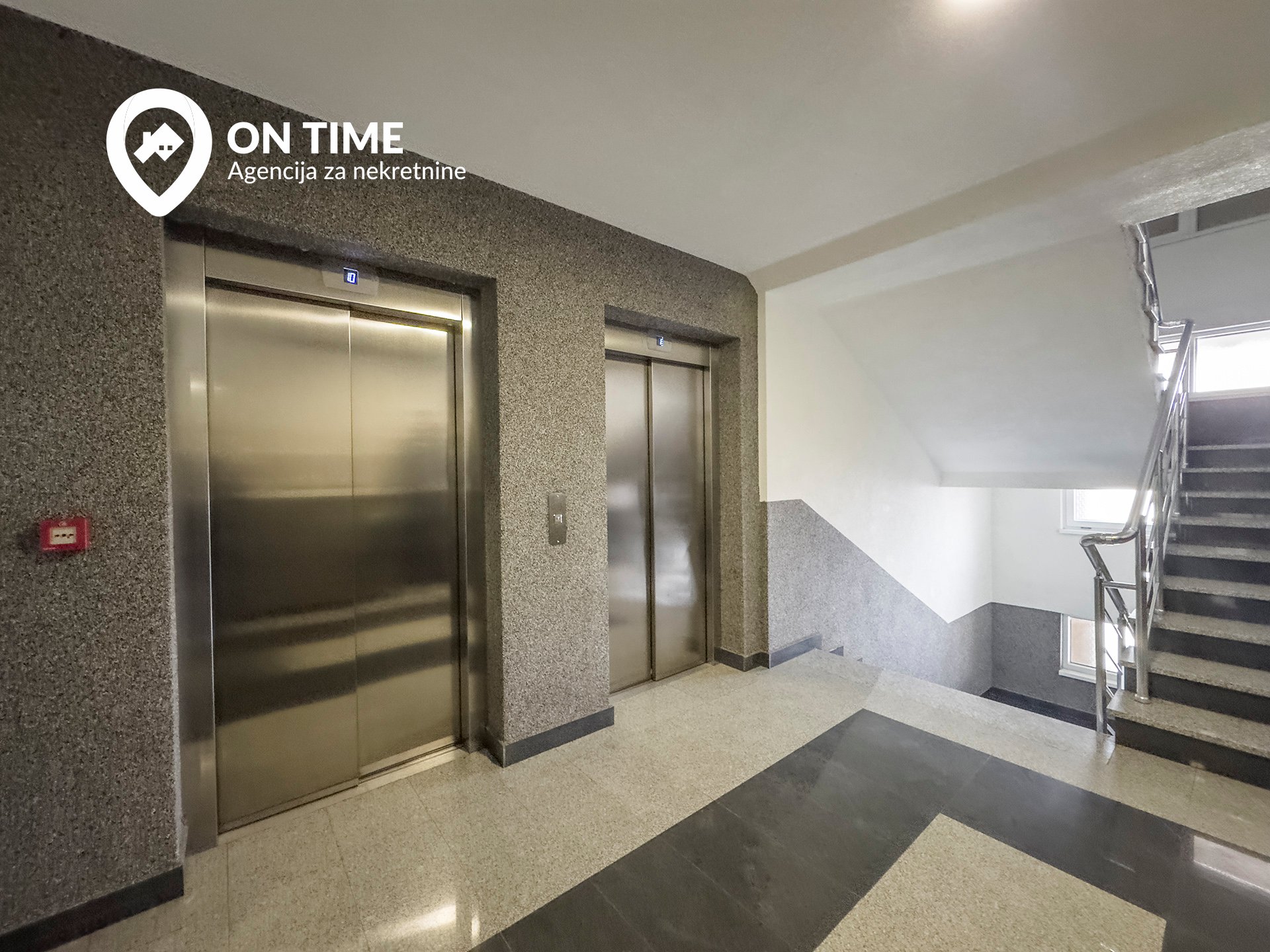 Stepeništa u zgradi su opremljena granitnim pločama debljine 3cm, dok je vertikalni transport u zgradi osiguran sa dva lifta. Fasada je obložena demit fasadnim sistemom proizvođača “Baumit”.